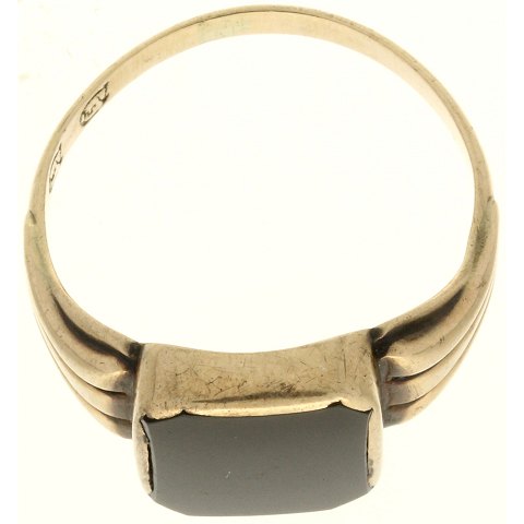 Herrering af guld 8kt fattet med sort sten