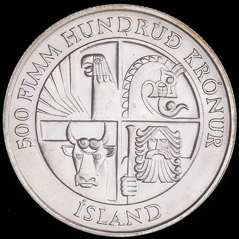 Island - 500 Krónur - 1974 - Sterlingsølv - UNC - KM# 20