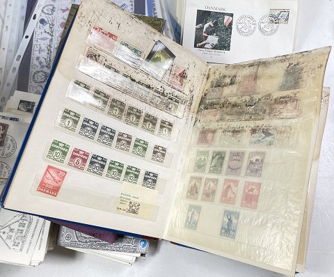 ca. 300 førstedagskuverter, 2 vandskadede albums, få ark moderne julemærke 2013-19 og nogle andre.