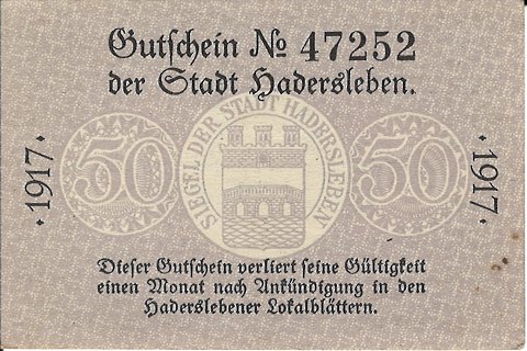 Haderslev Købstad - 50 pfennig 1917 - Sieg 40B