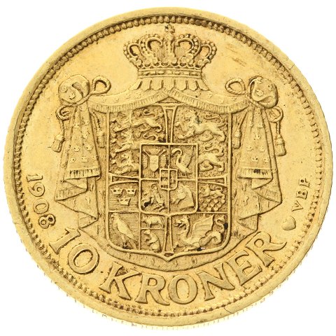 Frederik VIII - 10 kroner 1908 - GULD - Sieg 2, H 2