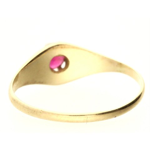 Ring af guld 14kt. fattet med rød sten