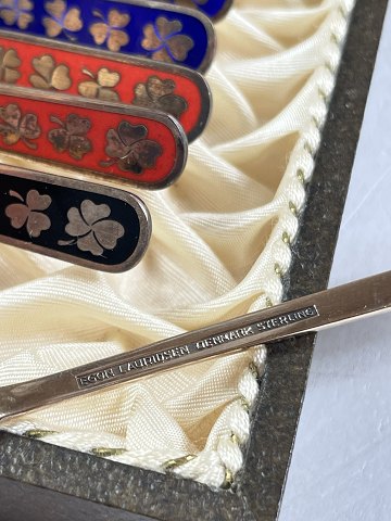 Egon Lauridsen - sæt teskeer af forgyldt sterlingsølv med emalje(12)
