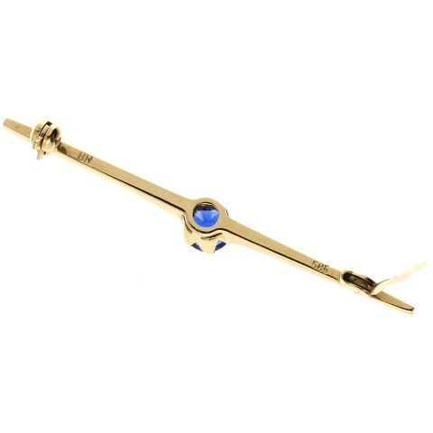 Broche af guld 14kt. fattet med blå sten