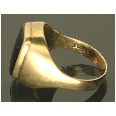 Herrering af guld 8kt. fattet med sort sten.