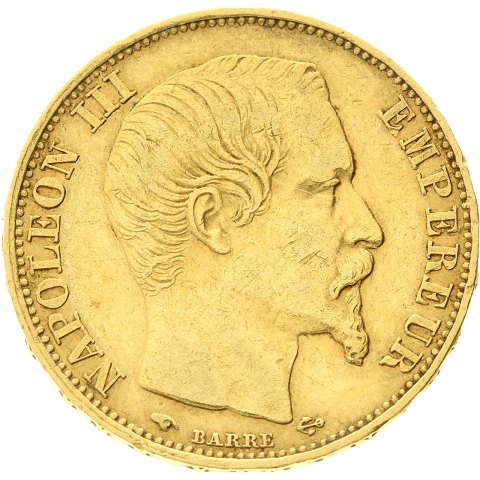 Frankrig - 20 francs - 1857 - A - Napoleon III - guld - KM# 781.1