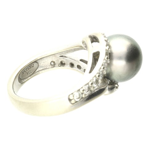 Ring af hvidguld 14kt. fattet med south sea perle og brillanter ialt ca. 0,45ct.