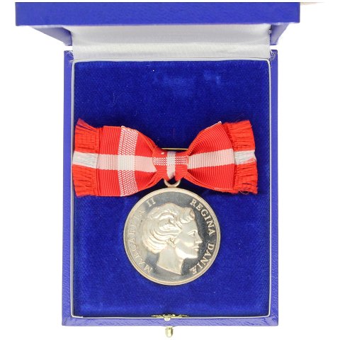 Dronning Margrethe II - fortjenstemedalje af sølv med ordensbånd