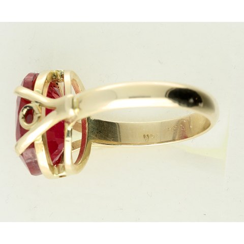 Ring af guld 14kt. fattet med stor rubin på 7.67ct. - GGL-certificeret