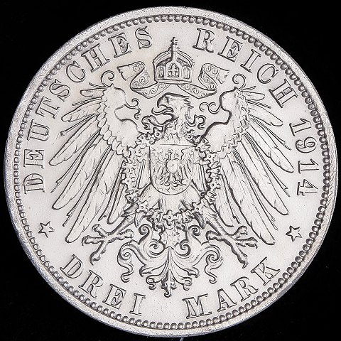 Preussen - 3 Mark - 1914 A - Wilhelm II - Sølv - KM# 538
