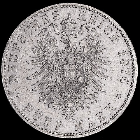 Tyskland, Hamburg - 5 Mark - 1876 J - Sølv - KM #598