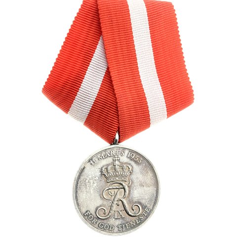 Frederik IX, medalje 1953, Fortjent med bånd, 21 gram, L: 8 cm