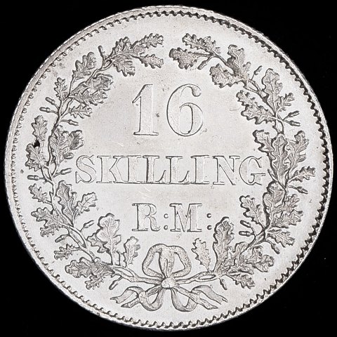 Frederik VII - 16 skilling rigsmønt 1857 - Sølv - UNC - Sieg 11, H 10B