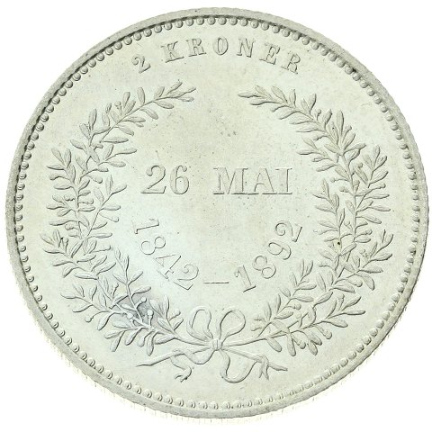 Christian IX - 2 kroner 1892 - Guldbryllup - UNC - sølv - Sieg 2, H 11