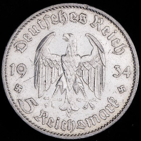 Tyskland - 5 Reichsmark - 1934 A (Berlin) - Potsdam Garnisonskirke - Sølv - KM# 82