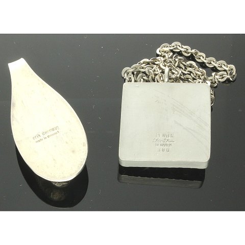 Vedhæng af forsølvet metal af Erik Dennung - Jørgen Jensen vedhæng af tin - halskæde af uædelt metal.