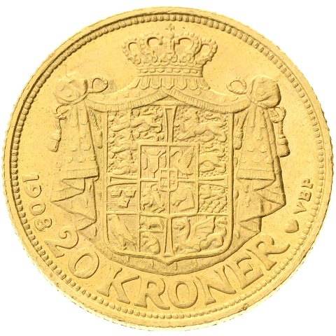 Frederik VIII - 20 kroner 1908 - guld - Sieg 2, H 1