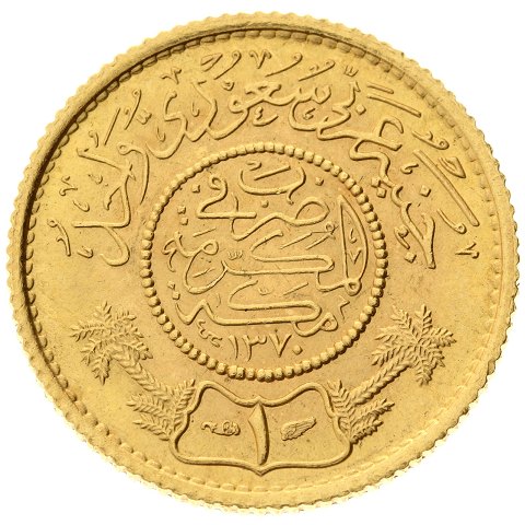 Saudi Arabien - 1 pound (Gunayh) 1951 - Abd al-Azīz - guld - KM# 36