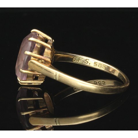 Ring af guld 14kt. fattet med lilla sten.