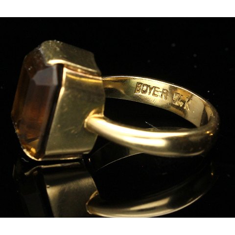 Ring af guld 14kt. fattet med røgkvarts.