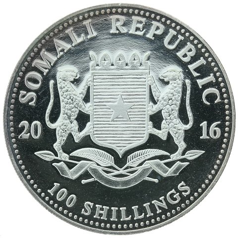 Somalia - 100 shillings 2016 - Elefant - 1 oz sølv - UC# 276