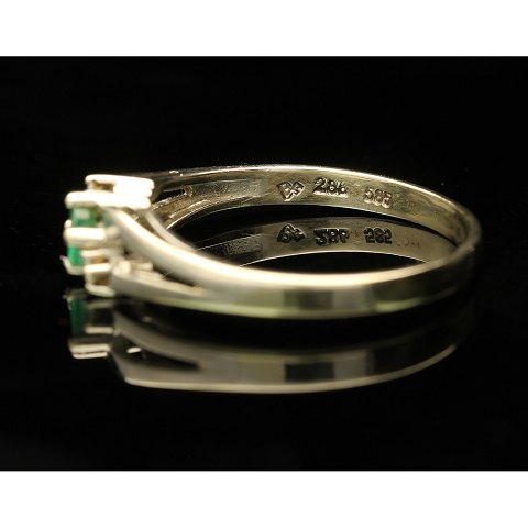 Ring af hvidguld 14kt. fattet med smaragd og brillanter ialt ca. 0.02ct.