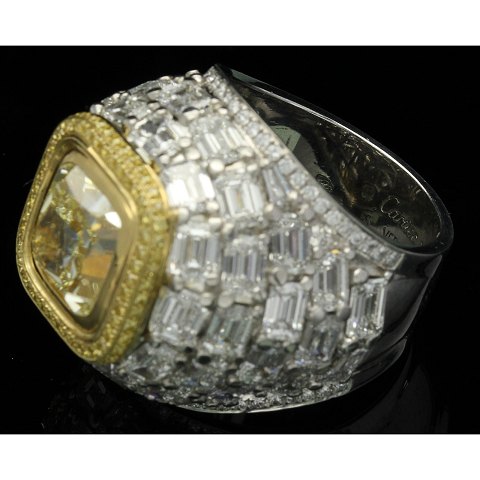 Ring af platin(950) fattet med cirka 160 diamanter ialt ca. 14ct. - centersten på 5.01ct.