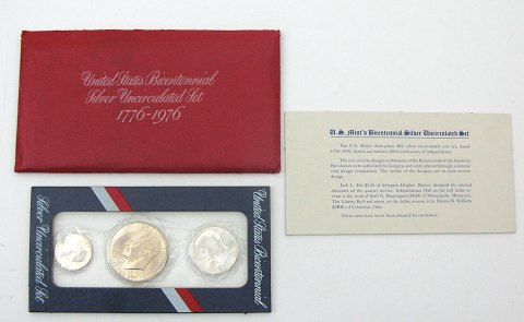 Bestående af quarter, half dollar og dollar 1976 tíl minde om 200 året for den amerikanske uafhængighed