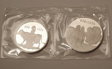 Præget i anledning af Islands 1100 års jubilæum fpr bosætningen 874-1974.
