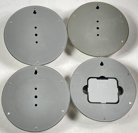 Ur, barometer, termometer, hygrometer i sølvfarve.