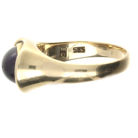 Ring af guld 14kt. fattet med lilla sten