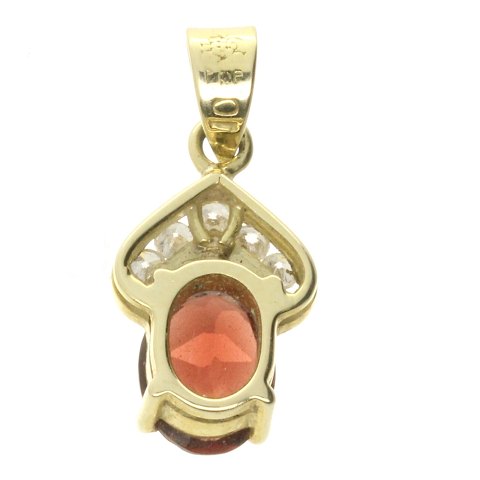Vedhæng af guld 14kt. fattet med rød og klare sten