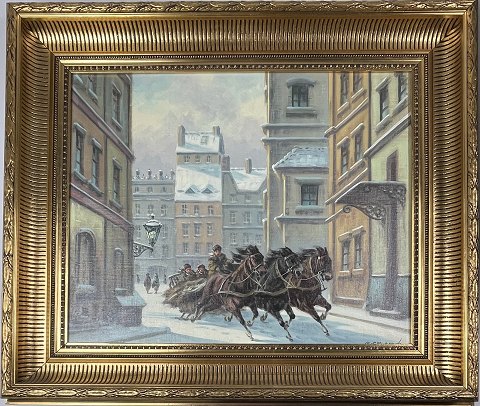 G. (Georges) Csapo (Ungarsk, 1910-?) - Vinterscene med heste
