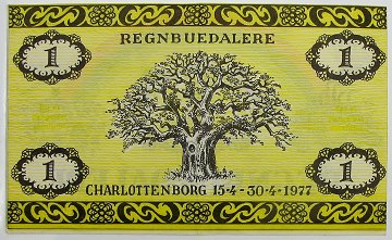 I forbindelse m. festivalen "Kærlighed og Kaos", der blev afholdt på kunstinstitutionen Charlottenborg i 1977, blev der udformet tre "sedler" m. denominationen "regnbuedaler". Overskuddet gik til vedligeholdelse og renovering af Fristaden.