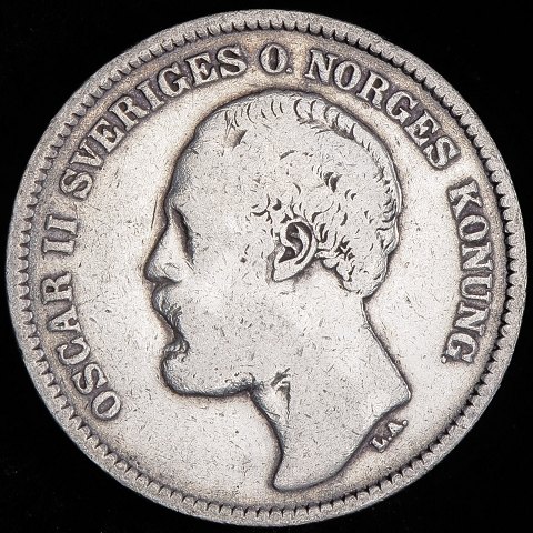 Sverige - 2 Kronor 1877 - Oscar II - Sølv - KM# 742