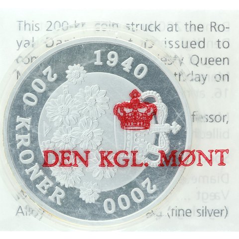 Margrethe II - 200 kroner 2000 - 60 års fødselsdag - 1 oz finsølv - Sieg 29