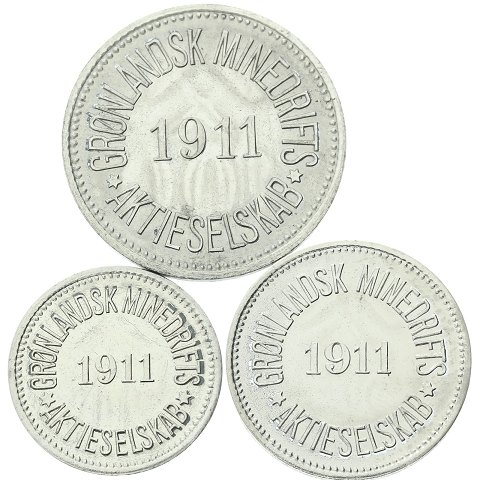 Grønlandsk Minedrift - 10-100 øre 1911 - Sieg 5.1/2/3 - Sæt af 3