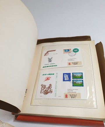 Førsteflyvningskuverter med FN frimærker for første flyvning på diverse ruter fra Geneve til 80 forskellige destinationer. Interessant samling. Formodentlig solgt i dyre domme i sin tid til samlere.