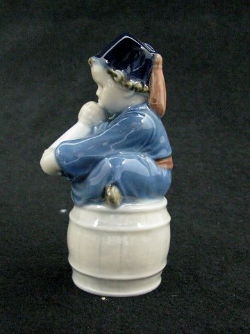 Royal Copenhagen #3689, Dreng med horn, 11 cm., Design: Ada Bonfils. 1. sort.