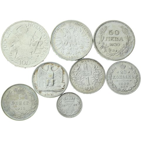 En samling af europæiske mønter af sølv - Med en kasse - 27 stk