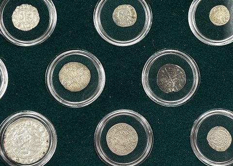 Smukt møntsæt med 14 forskellige europæiske sølvmønter fra ca. år 1000-1546.