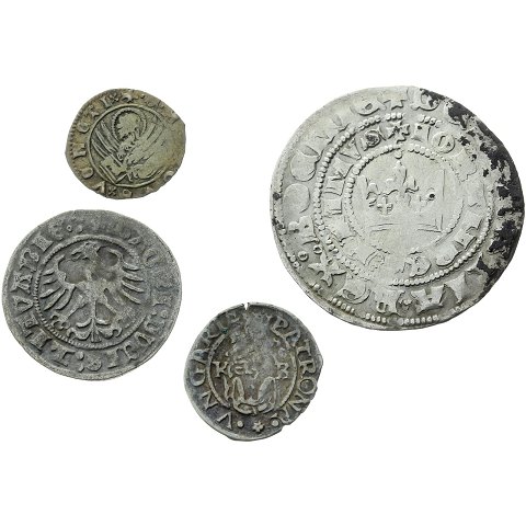 Smukt møntsæt med 14 forskellige europæiske sølvmønter fra ca. år 1000-1546.