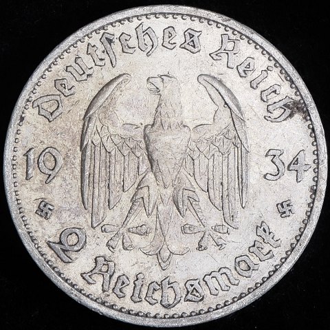Tyskland - 2 Reichsmark - 1934 G (Karlsruhe) - Potsdam Garnisonskirke - Sølv - KM# 81