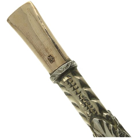 Te-sugerør af sølvplet med mundstykke af guld 18kt.