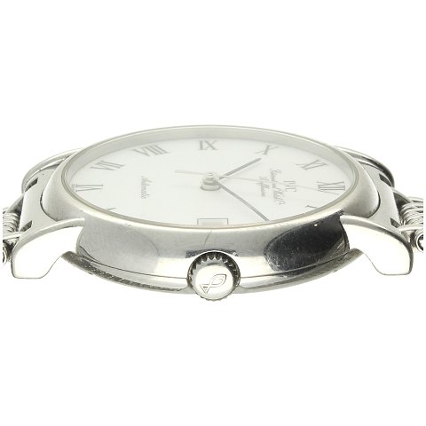 Uret har en 34mm kasse af stål, kassen er monteret på en original IWC lænke som ligeledes er udført i stål. Uret har en elegant hvid skive med romertal og datovindue. Uret er udstyret med et mekanisk værk med automatisk optræk.