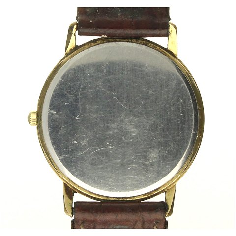 Uret har en 33mm kasse af forgyldt metal, kassen er monteret på en brun læderrem. Uret har en champagnefarvet skive med stregindeks og datovindue. Uret er udstyret med et Omega quartz værk.