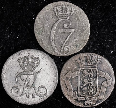 Danmark, sølv lot, 3 stk. - 1 skilling - 1764, 1779, 1809 - Frederik V, Christian VII, Frederik VI - Sieg 2.2, H 37 B / Sieg 3, H 34 / Sieg 1, H 7