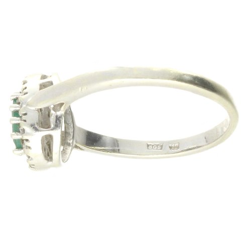 Ring af hvidguld 14kt. fattet med smaragd og brillanter ialt ca. 0.25ct.