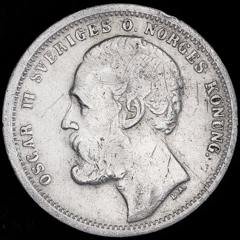 Sverige - 1 Krona - 1876 - Oscar II - Sølv - KM# 741