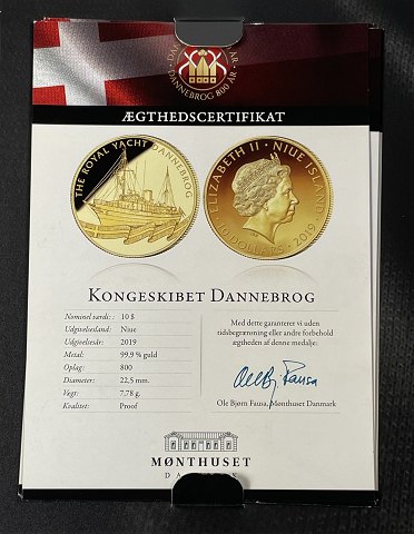 10 dollars 2019 'Kongeskibet Dannebrog' Niue Island (7.78 gram, 0.999 guld).